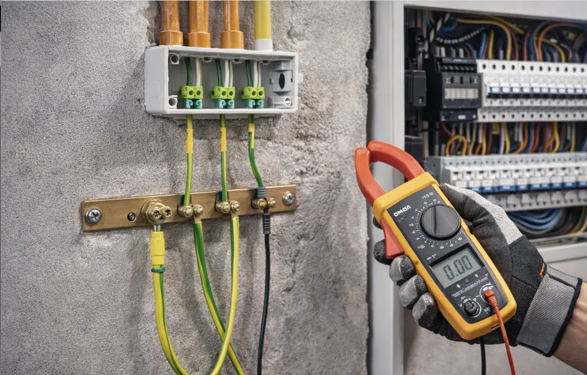 Fém szerkezetek, csövek és földelések összekötése a potenciálkülönbség kialakulásának megelőzésére.